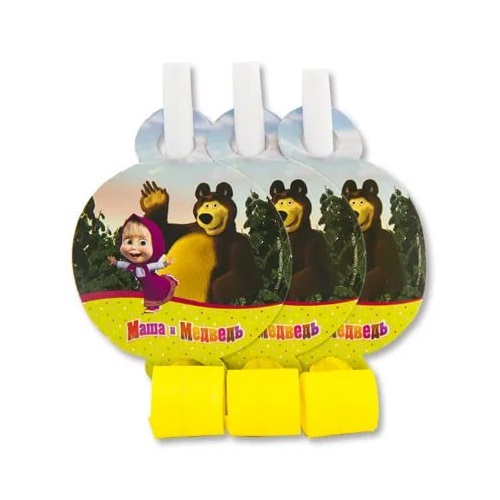 Игрушка-свистулька Язык-гудок Маша и Медведь 6шт., при вдувании воздуха разворачивается и издает звук, рекомендуется использовать в комплекте с другими атрибутами праздника.