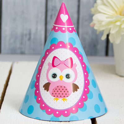 Карнавальный головной убор Колпак Милые Совушки розовый 6шт отлично украсит Ваше событие. Рекомендуется использовать с другими праздничными атрибутами.