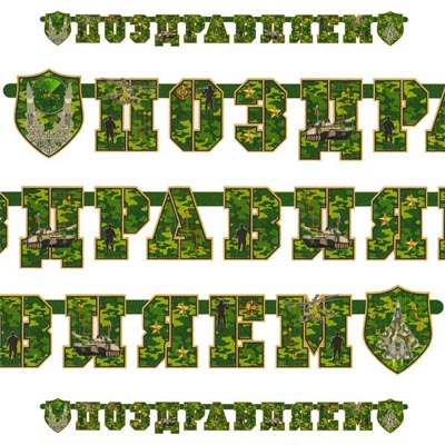Гирлянда-буквы ПОЗДРАВЛЯЕМ Камуфляж 200см