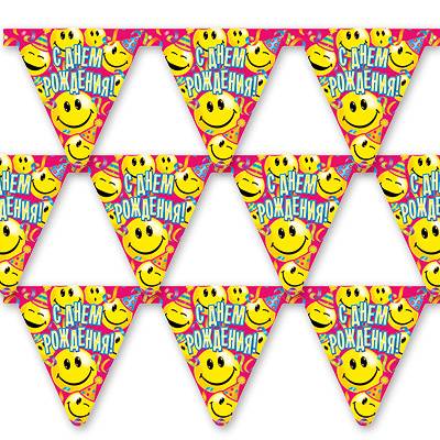 Украшение праздника в виде Гирлянды-вымпел С ДР Улыбки 200см. С помощью такого украшения можно быстро оформить фотозону или просто украсить помещение.