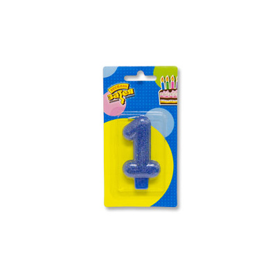 Свеча -цифра "1" Блестящая синяя 7,6см.