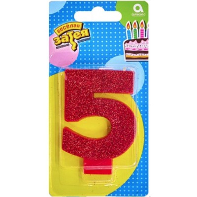 Свеча -цифра "5" Глиттер отличное дополнение праздничного угощения. Потрясающе соотносится с воздушными шариками похожих расцветок.