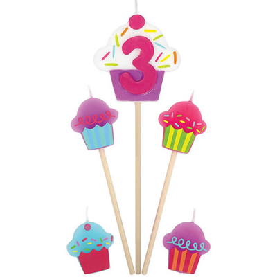 Свечи д/торта на пиках "3" Кекс 5шт. великолепное оформление торжественного десерта. Отлично сочетается с воздушными шарами похожих расцветок.