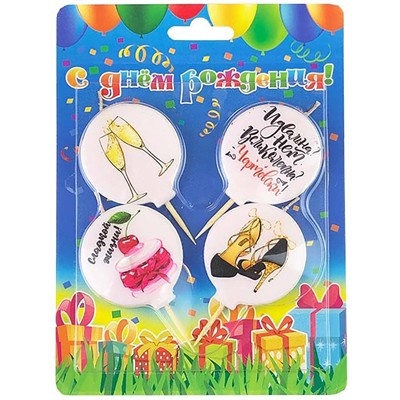 Свечи д/торта на пиках Бокалы 4шт замечательное дополнение для вкусного десерта. Прекрасно сочетается с воздушными шарами похожих цветок.