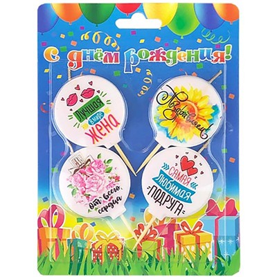Свечи д/торта на пиках Женские 4шт замечательное дополнение для вкусного угощения. Прекрасно сочетается с воздушными шариками таких же расцветок.