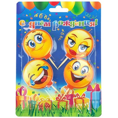 Свечи д/торта на пиках Смайлики 4шт