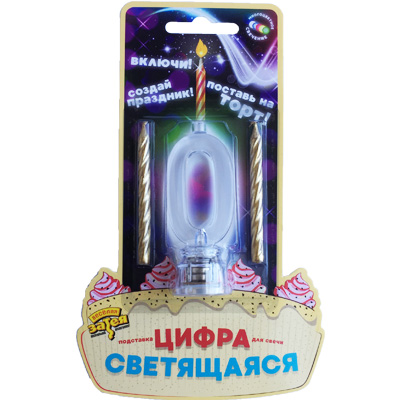 Цифра LED"0"д/торта и праздн стола+2свеч