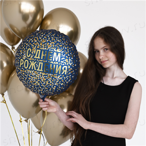 Букет из шаров "Блеск золотых конфетти" состоит из 9 латексных шаров хром цвета золото и фольгированного шара-круга. Размер латексных шаров 30-35см. Гарантированное время полета шариков 48 часов (как правило летают неделю и дольше). Шарики доставляются собранные в букет, который можно распустить. Если необходимо собрать букет в фонтан на грузик или добавить шарики, сообщите об этом менеджеру при оформлении заказа.