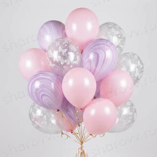 Облако из шаров ассорти "Сиреневая сюита" состоит из 16 латексных шариков: