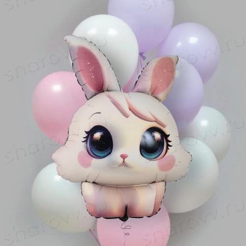 Облако из шаров "Воздушный Хрустик" состоит из 12 латексных шаров макарунс (розового, сиреневого и белого цвета по 4 каждого цвета) и 1 фольгированного шара в виде очаровательно зайчика. Размер латексных шаров 35-40см. Гарантированное время полета шариков 48 часов (как правило летают неделю и дольше). Шарики доставляются собранными в букет, который можно распустить. Если необходимо собрать шарики в фонтан, сообщите об этом в комментарии к заказу или по телефону менеджеру.