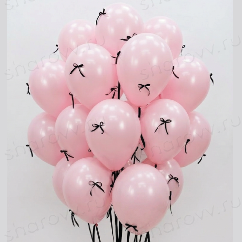 Облако из гелиевых шаров "Нежное кружево" состоит из 16 латексных шаров пастель розового цвета с чёрными мини-бантиками на каждом шаре. Размер латексных шаров 35-40см. Гарантированное время полета шариков 48 часов (как правило летают неделю и дольше). Шарики доставляются собранные в облако, которое можно распустить.