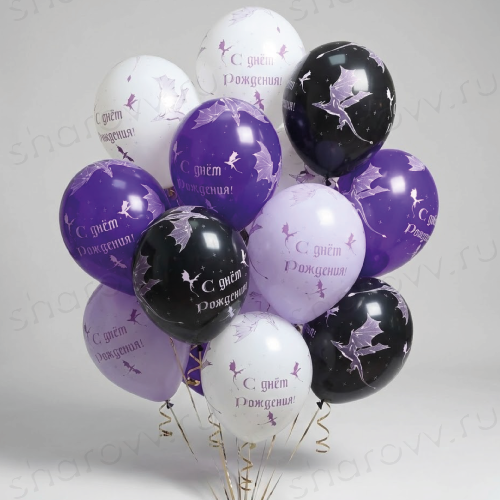 Облако шаров "С Днём рождения! Дракон"