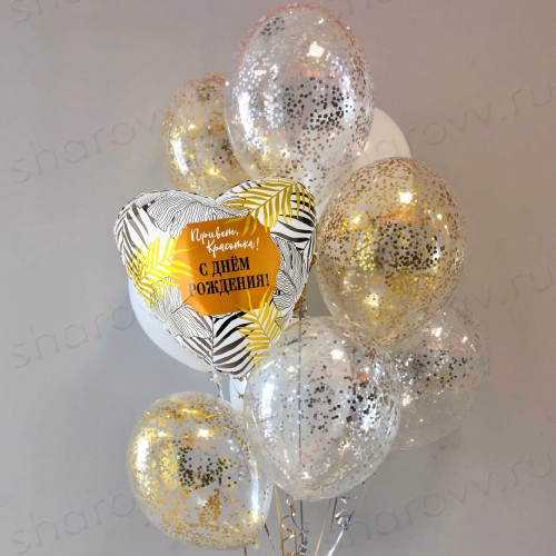 - 1 фольгированный шар с надписью: "Привет, красотка! С Днём рождения!".