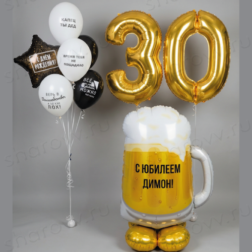 - фольгированной фигуры, надутой воздухом, в виде огромной кружки пива 120 см в высоту и индивидуальной надписью;
