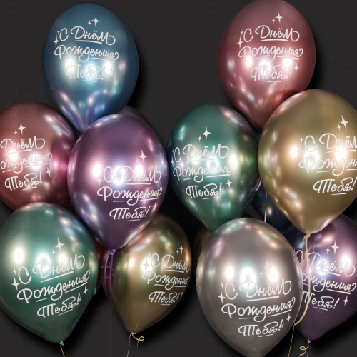 Набор из шаров "Дуэт сияний" состоит из двух фонтанов на грузиках, в каждом из которых по 7 шариков хром с надписью. Гарантированное время полета шариков 48 часов (как правило летают неделю и дольше). Шарики доставляются собранные в два фонтана.