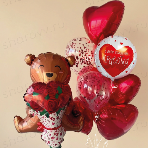 - фольгированного шара в виде медвежонка с цветами на грузике;