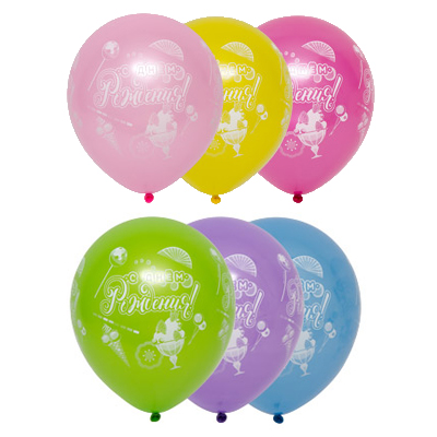 Воздушные шары с надписью "С днем рождения" и изображением сладостей, наполнены гелием. Размер шариков 30-35см. Время полета 12 часов, можно продлить обработав шарики Hi-Float. Гарантированное время полета обработанных шариков 48 часов (как правило летают неделю и дольше).
