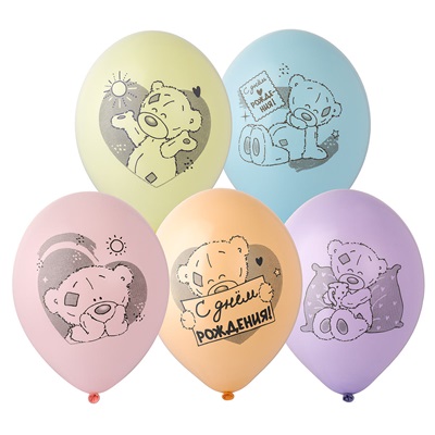 Воздушные шары "Me To You С Днем Рождения" наполнены гелием. Размер шариков 35-40см. Время полета 12 часов, можно продлить обработав шарики Hi-Float. Гарантированное время полета обработанных шариков 48 часов (как правило летают неделю и дольше). Шарики доставляются собранные в облако которое можно распустить по потолку.