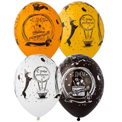 Воздушные шары "С Днем Рождения Такса" наполнены гелием. Размер шариков 35-40см. Время полета 12 часов, можно продлить обработав шарики Hi-Float. Гарантированное время полета обработанных шариков 48 часов (как правило летают неделю и дольше). Шарики доставляются собранные в облако которое можно распустить по потолку.