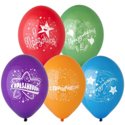 Воздушные шары "С Праздником!" наполняются гелием. Размер шарика 35-40см. Длительность полета 12 часов, можно продлить обработав шарики Hi-Float. Гарантированное время полета обработанных шариков 48 часов (как правило летают неделю и дольше). Шары доставляются собранные в облако которое можно распустить.