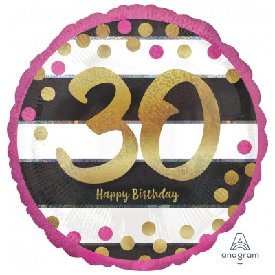 Шар круг фольга "HB 30 Полосы черно-белые"