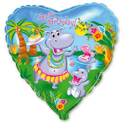 Воздушный шар из фольги "HB Бегемот танцующий" надут гелием. Время полета фольгированного шара от 3-х дней до нескольких недель.