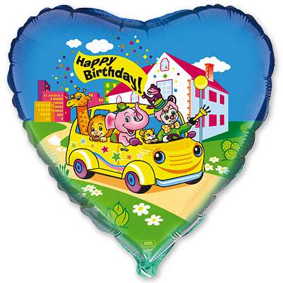Шар сердце фольга "HB Друзья в автомобиле"