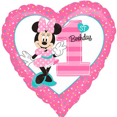 Воздушный шар из фольги "Минни Маус 1-й День Рождения" надут гелием. Время полета фольгированного шара от 3-х дней до нескольких недель.