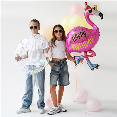 Воздушный шар из фольги "Фламинго на стиле" надут гелием. Время полета фольгированного шара от 3-х дней до нескольких недель.