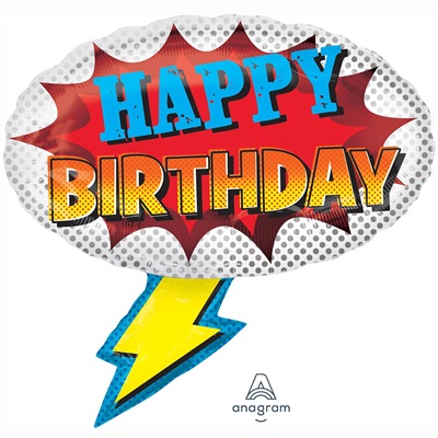 Воздушный шар из фольги "Happy Birthday супергерой" надут гелием. Время полета фольгированного шара от 3-х дней до нескольких недель.