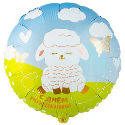 Воздушный шар из фольги "С Днем Рождения Овечка белая милая" надут гелием. Время полета фольгированного шара от 3-х дней до нескольких недель.