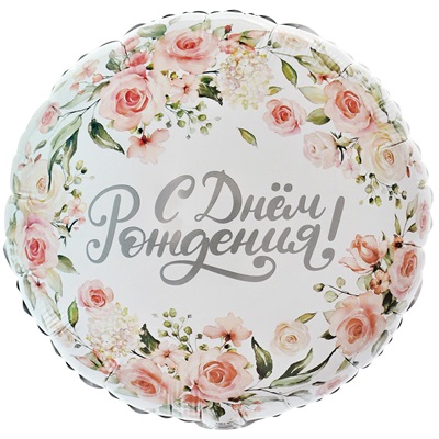 Шар круг "С Днем Рождения цветы акварель"