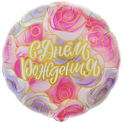Воздушный шар из фольги "С Днём Рождения розы контуры золотые" надут гелием. Время полета фольгированного шара от 3-х дней до нескольких недель.