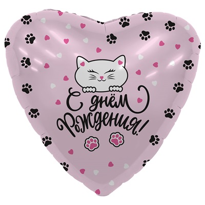 Воздушный шар сердце из фольги "С Днем Рождения Лапки" надут гелием. Время полета фольгированного шара от 3-х дней до нескольких недель.