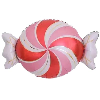 Воздушный шар из фольги "Конфета завитки розово-красные" надут гелием. Время полета фольгированного шара от 3-х дней до нескольких недель.