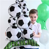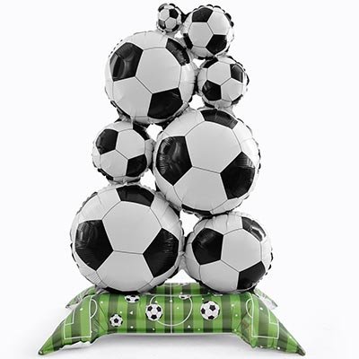 Воздушный шар из фольги "Мячи футбольные" надут воздухом. Время сохранения формы фольгированного шара от 3-х дней до нескольких недель.