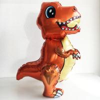 Шар ходячка из фольги "Динозавр Тиранозавр малыш оранжев" наполняется гелием, в нижней части крепятся грузики которые не позволяют шарику летать, при этом он отлично стоит на полу. Продолжительност жизни ходячки от 3-х суток.
