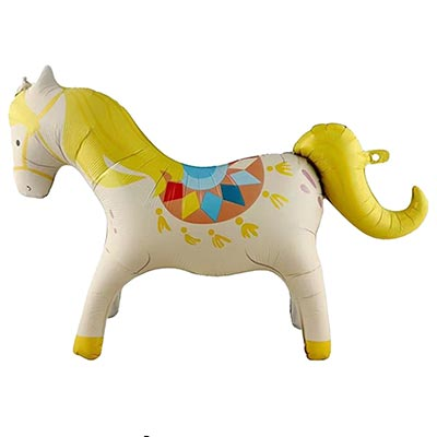 Воздушный шар из фольги "Лошадь цирковая" надут воздухом. Время сохранения формы фольгированного шара от 3-х дней до нескольких недель.