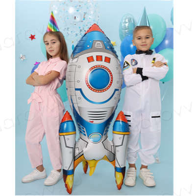 Воздушный шар из фольги "Ракета синяя" надут воздухом. Время сохранения формы фольгированного шара от 3-х дней до нескольких недель.