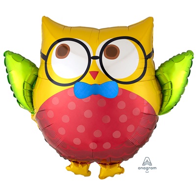 Воздушный шар из фольги "Сова в очках" надут гелием. Время полета фольгированного шара от 3-х дней до нескольких недель.
