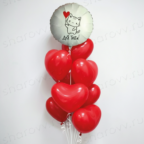 Фонтан из шаров "Признание в сердечках" состоит из 8 латексных красных сердец и фольгированного круглого шара с надписью "Для тебя!". Размер латексных шаров 30-35см. Гарантированное время полета шариков 48 часов (как правило летают неделю и дольше). Шарики доставляются собранные в фонтан на грузике.