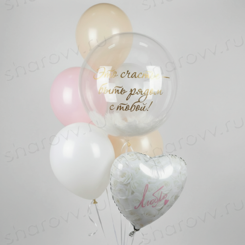 - шара баблс 60 см с белыми пёрышками и индивидуальной надписью на выбор;