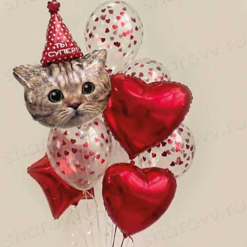 - фольгированной фигуры в виде котика в колпаке с готовой надписью "Ты - супер!"