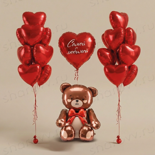 - большого красного фольгированного сердца с надписью "Самой любимой" (надпись можно заменить);
