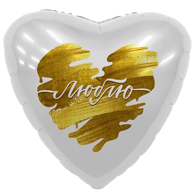 Воздушный шар из фольги "Люблю в сердце" белого цвета с золотом. Время полета фольгированного шара от 3-х дней до нескольких недель.