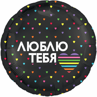 Шар круг фольга "ЛЮБЛЮ ТЕБЯ Сердца разноцветные"