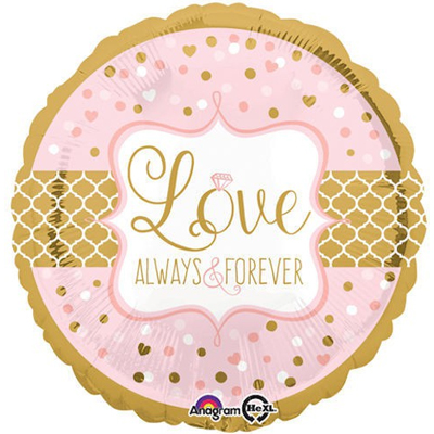 Воздушный шар из фольги "Love Горошек розово-золотой" надут гелием. Время полета фольгированного шара от 3-х дней до нескольких недель.