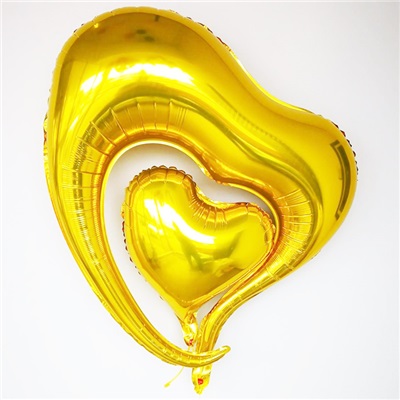 Воздушный шар из фольги "Сердце двойное Золото" наполняется гелием. Время полета шара от 72-х часов и более. Хорошим комплектом могут быть шарики из латекса схожих расцветок.