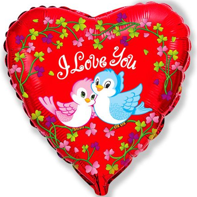 Воздушный шар из фольги "ILY Птички воркующие" надут гелием. Время полета фольгированного шара от 3-х дней до нескольких недель.