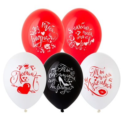 Воздушные шары из латекса "Слова Любви" наполнены гелием. Время полета 12 часов, можно продлить обработав шарики Hi-Float. Гарантированное время полета обработанных шариков 48 часов (как правило летают неделю и дольше).